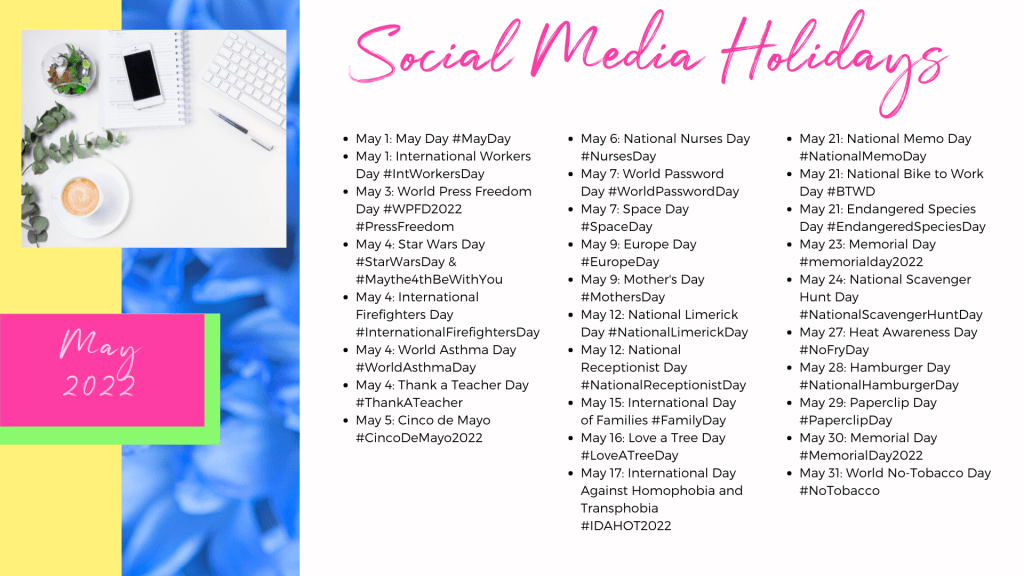 Check out the entire May Social Media Holiday Calendar below for some creative ideas!