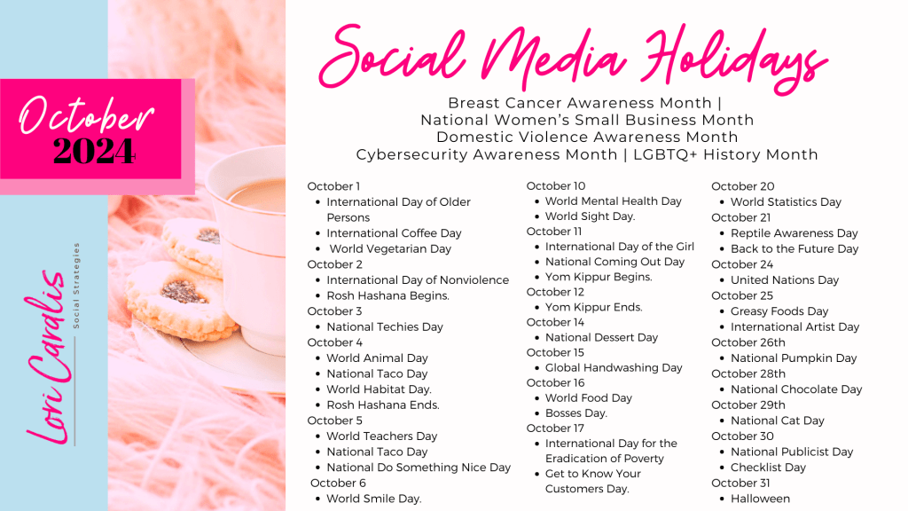 October is here, bringing crisp air, spooky season vibes, and plenty of opportunities to get creative with your content! Have you started planning your October social media posts yet? No worries if you haven’t—I’ve got you covered. Check out my FREE Social Media Strategy Planner/Calendar to easily map out all your monthly content, including the exciting social media holidays for October.
